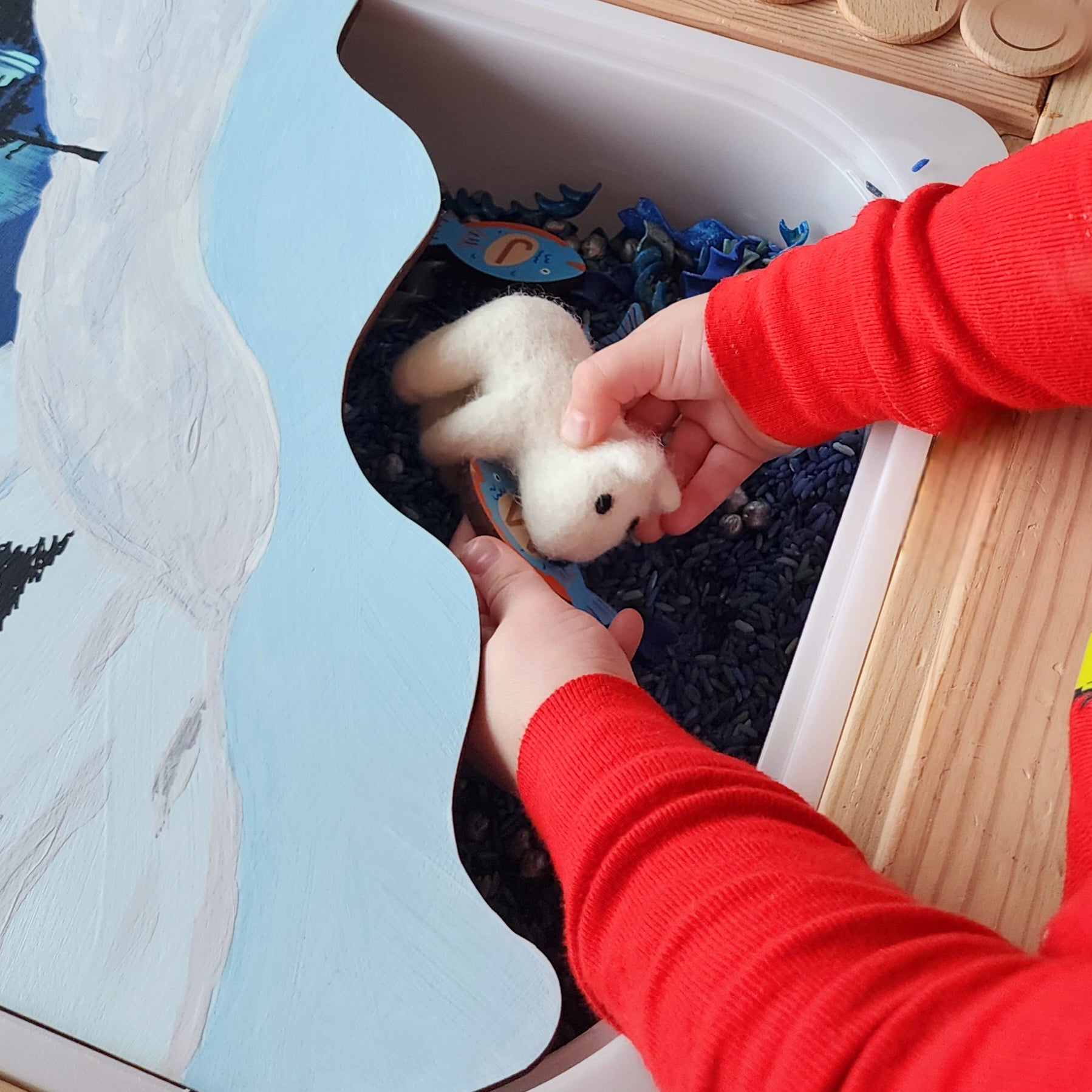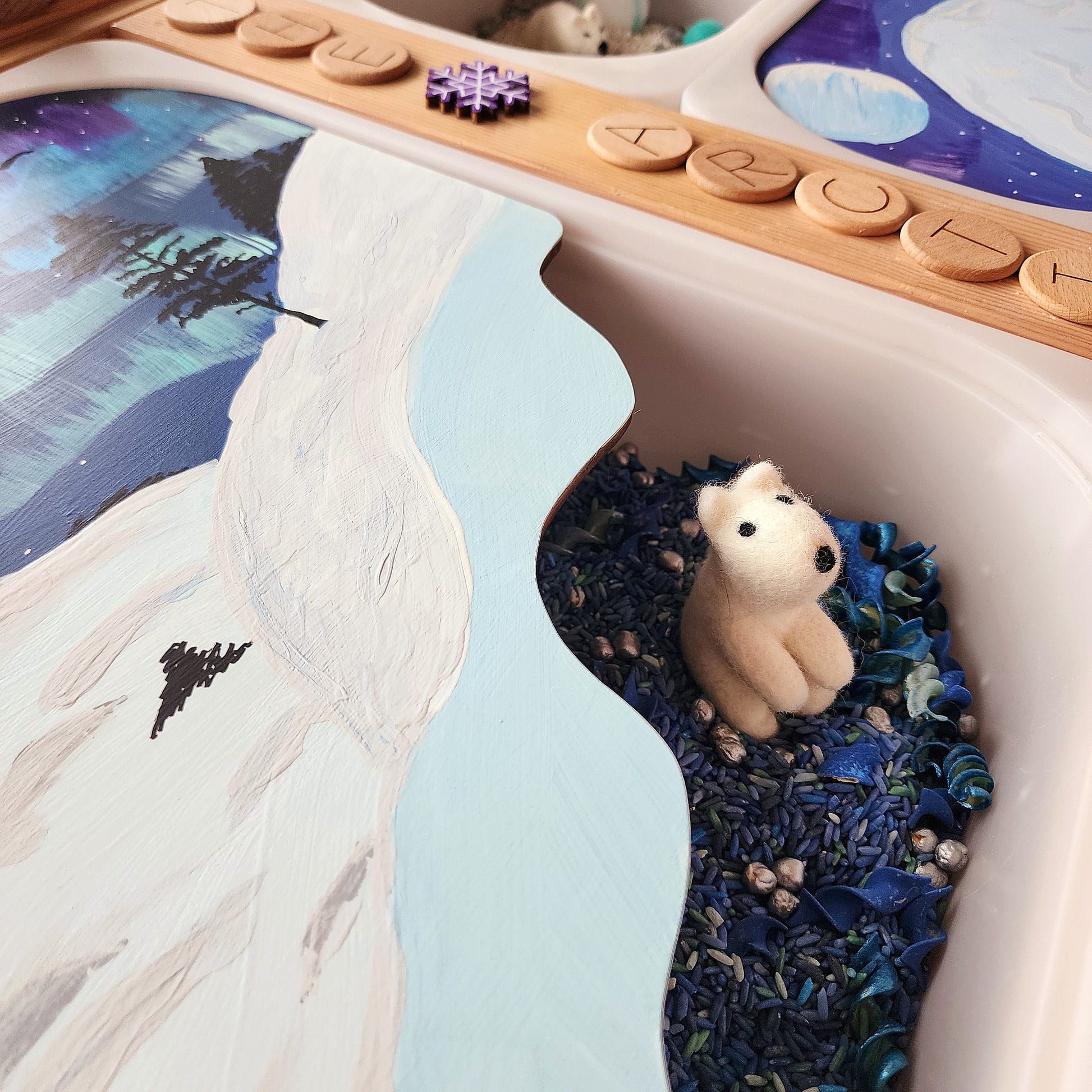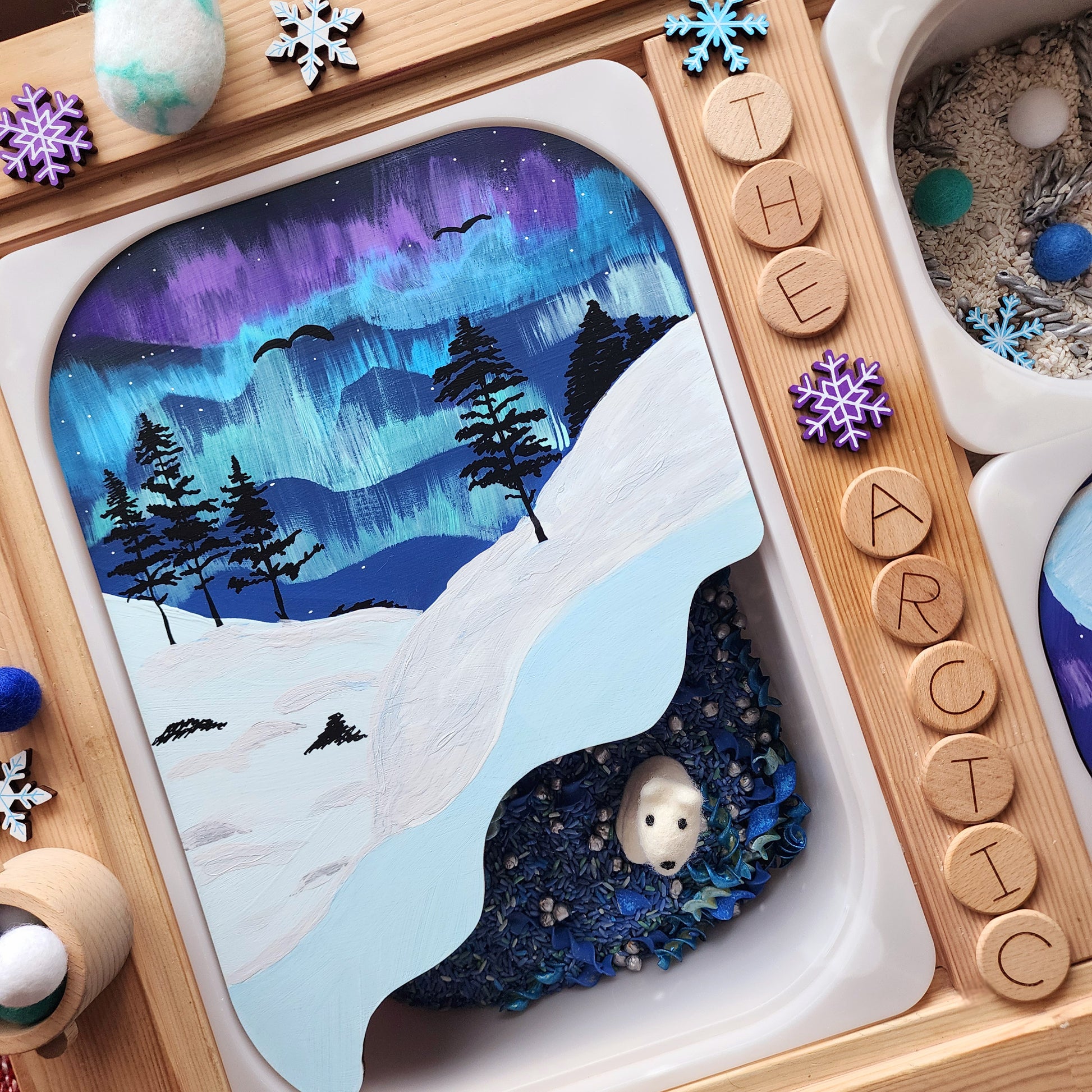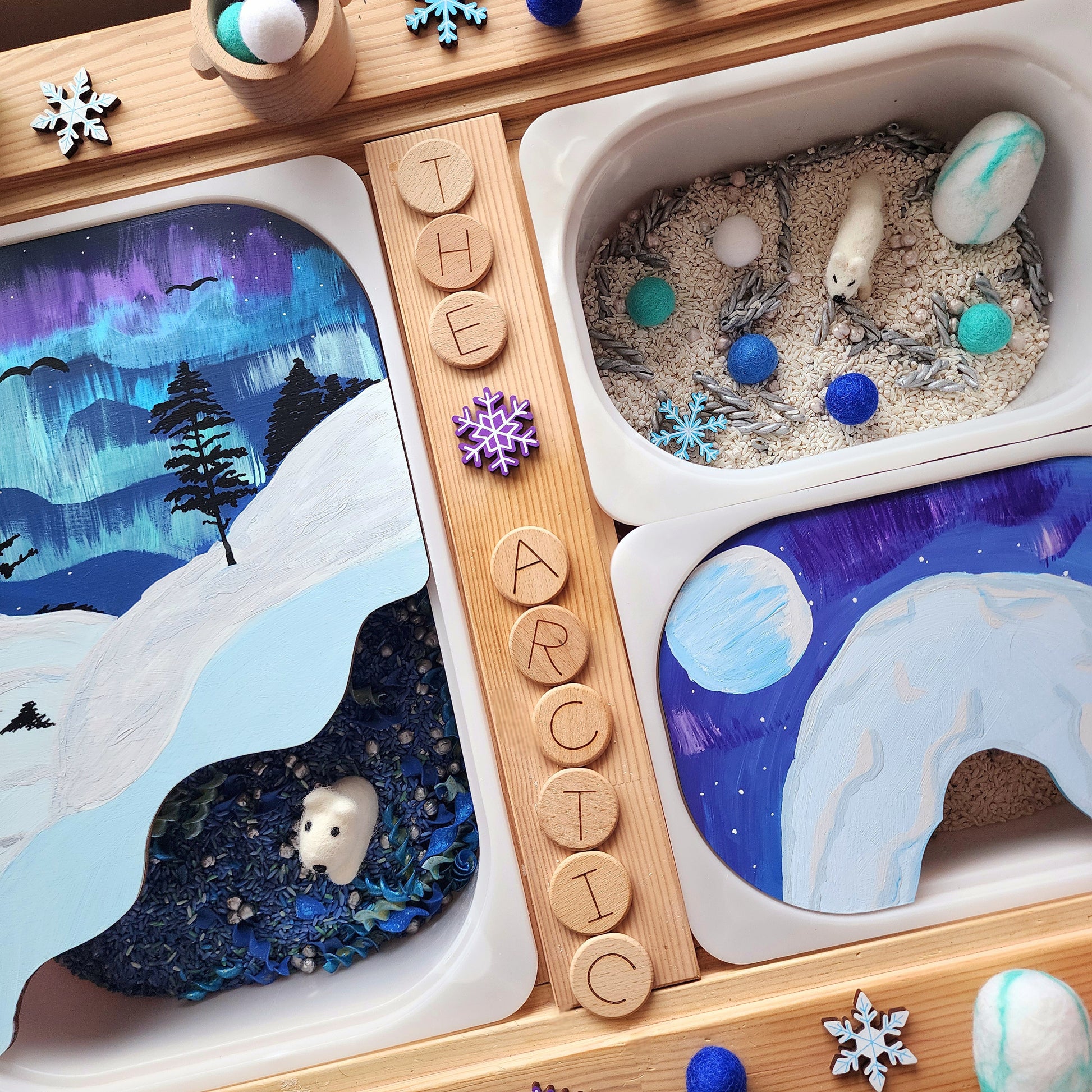 Created from Maple and hand-painted. designed to fit in the large size trofast bin for the flisat table.