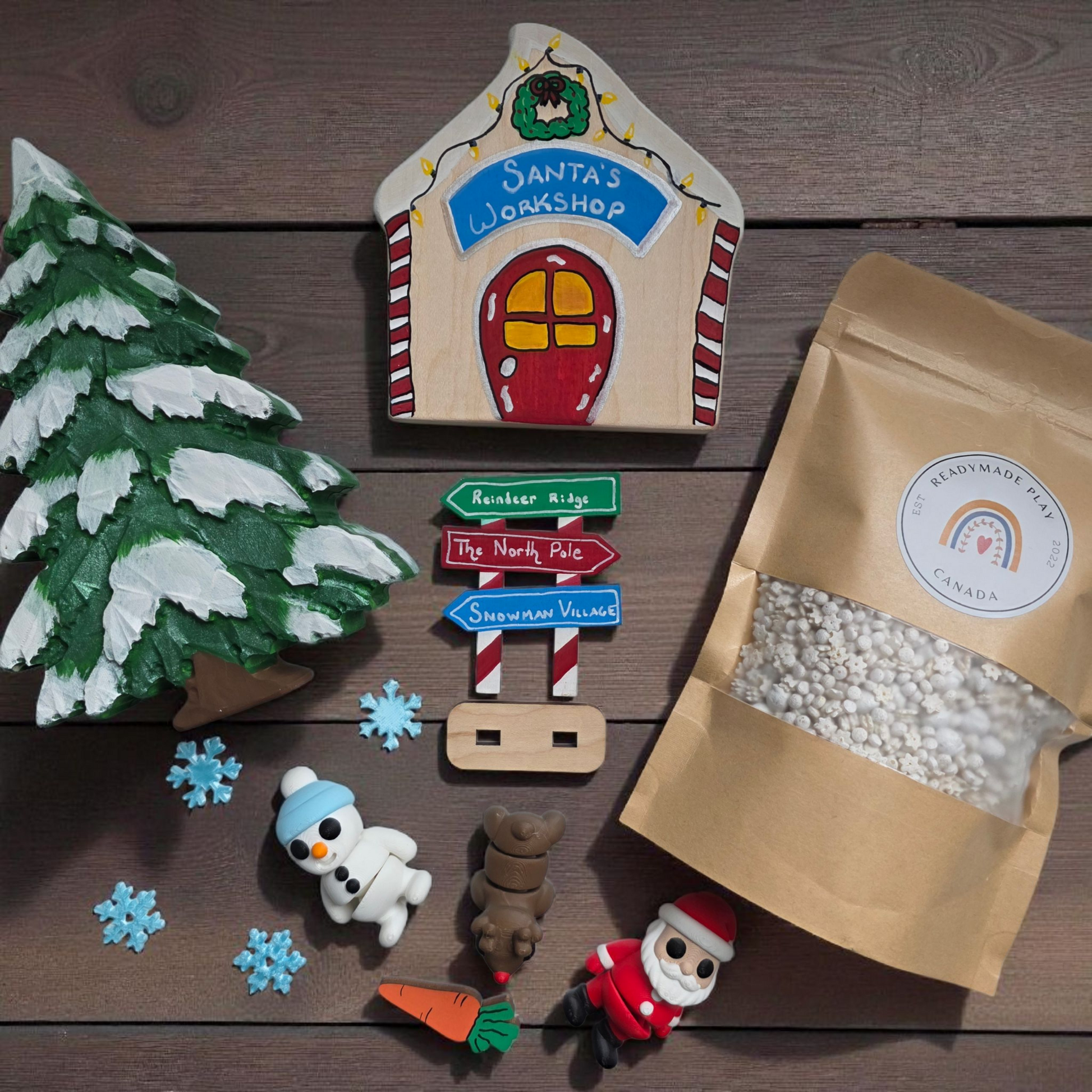 - 2 Cups of Sparkling snow sensory filler by @readymadeplaycanada